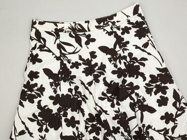 Spódnica H&M - Model: rozkloszowana, z zakładkami z przodu - Wzór: duży kwiatowy print w kolorze ciemnobrązowym/czarnym na białym tle - Tkanina wierzchnia: 98% bawełna, 2% elastan – lekko elastycz...