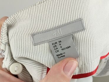 Biała, rozkloszowana spódnica damska H&M, wykonana z mieszanki bawełny, poliestru i włókien metalizowanych. Charakteryzuje się teksturą, która nadaje jej unikalny wygląd. Spódnica posiada zakładki ...Biała spódnica damska marki H&M, idealna do różnych stylizacji. Wykonana z mieszanki materiałów, w tym bawełny, poliamidu i elastanu, co zapewnia komfort noszenia i dopasowanie do sylwetki. Podszewka z poliestru zwiększa wygodę. Spódnica o długości do kolan, w rozmiarze EUR 36, US 6, CA 6, CN 165/68A. Możliwość noszenia na co dzień, do pracy lub na specjalne okazje. Wyprodukowana w Turcji.