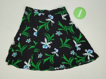 Spódnica HEMA, rozmiar L - Krój: mini, ołówkowa z lekkim marszczeniem z przodu - Pas: szeroki, elastyczny czarny ściągacz zapewniający wygodne dopasowanie - Wzór: graficzne kwiaty w stylu retro na...
