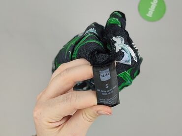 Spódnica HEMA, rozmiar L - Krój: mini, ołówkowa z lekkim marszczeniem z przodu - Pas: szeroki, elastyczny czarny ściągacz zapewniający wygodne dopasowanie - Wzór: graficzne kwiaty w stylu retro na...Spódnica HEMA, damska