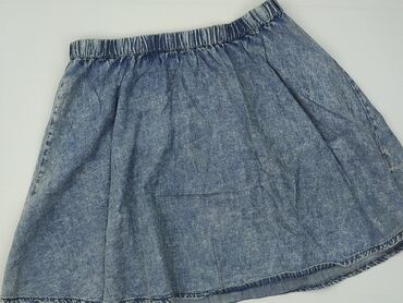 Spódnica Sinsay - Model: niebieska, denimowa - Rozmiar z metki: M - Skład: 100% bawełna - Fason: dopasowana góra z elastycznym, marszczonym karczkiem (smocking), na dole doszyta falbana - Talia: e...