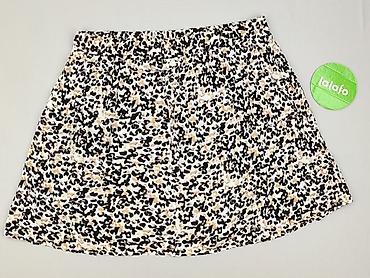 GUESS – spódnica damska, rozmiar XL (EU 46/UK 16) - Krój: krótka, rozkloszowana z falbaną; podwyższony stan - Wzór: wielobarwny motyw w odcieniach czerni, khaki, brązu i turkusu z drobnymi, jasnymi...
