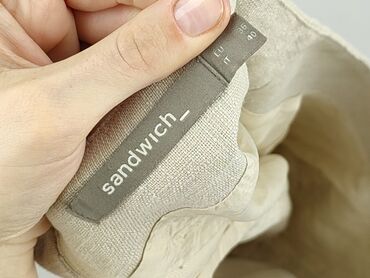 Beżowa spódnica damska wykonana z lnu. Charakteryzuje się unikalnym marszczeniem w dolnej części, tworzącym falbankę. Krój spódnicy jest dopasowany w górnej części i rozszerza się ku dołowi, co nad...Używana spódnica damska marki Sandwich w idealnym stanie. Wykonana z materiału o fakturze lnu w kolorze beżowym. Klasyczny krój, zapinana z tyłu na zamek błyskawiczny. Idealna na co dzień i na specjalne okazje.