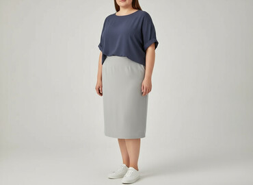 Na co dzieńSzara spódnica o prostym kroju, wykonana z gładkiego materiału, co nadaje jej minimalistyczny i uniwersalny wygląd. Spódnica ma długość do kolan, co sprawia, że jest odpowiednia do różnych stylizacji, zarówno codziennych, jak i bardziej formalnych. Z tyłu spódnicy znajduje się zamek błyskawiczny, co ułatwia zakładanie i zdejmowanie. Prosty fason podkreśla sylwetkę, nie krępując ruchów.