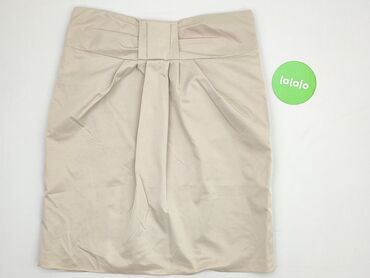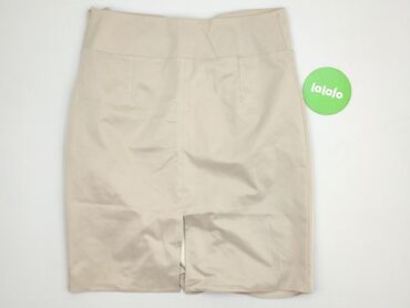 Spódnica damska w kolorze beżowym - Krój: lekko rozszerzana/A-line, z odcięciem poniżej pasa i subtelnymi pionowymi przeszyciami modelującymi sylwetkę - Talia: średnia, pasek z zaszewkami - Zapięc...