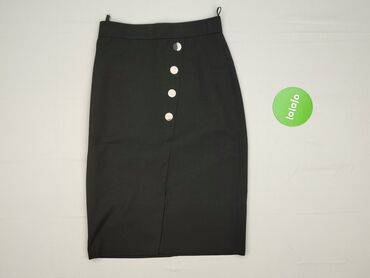 Czarna spódnica mini damska, z ozdobnymi guzikami w kolorze złotym z przodu. Posiada dwie praktyczne kieszenie. Z tyłu zapinana na zamek błyskawiczny. Wykonana z mieszanki poliestru, wiskozy i elas...