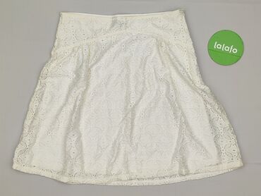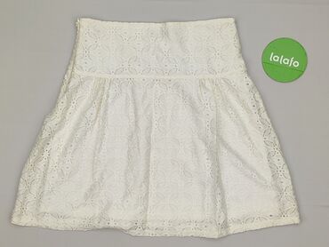 Biała spódnica damska Sinsay, rozmiar M. - Krój: rozkloszowana, warstwowa (falbany), długość mini. - Tkanina: ażurowa haftowana bawełna z podszewką – przewiewna, idealna na lato. - Talia: elastycz...