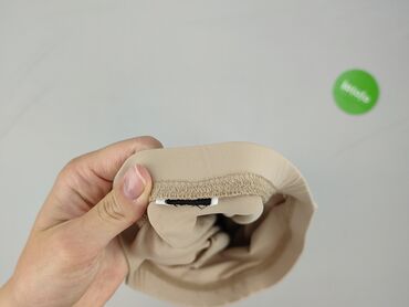 Spódnica damska z dzianiny, beżowa, o strukturze waflowej. - Fason: prosty, lekko w literę A, długość mini/tuż nad kolano - Talia: zapinana z przodu na duży guzik (efekt rogu) z zakładką; z tyłu s...