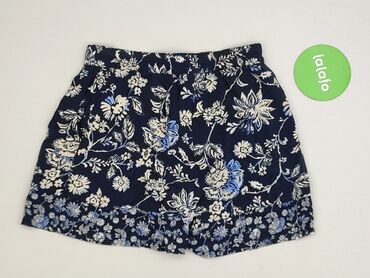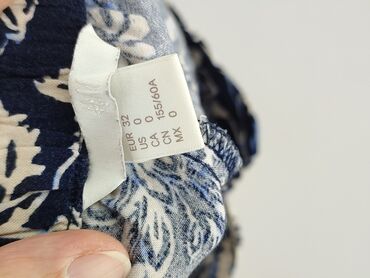 Niebieska spódnica w kwiaty - Krój: prosta, lekko rozszerzana ku dołowi - Talia: elastyczna (gumka) - Wzór: drobne, turkusowe kwiaty na granatowo‑niebieskim tle - Długość: ok. 53 cm (widoczne na z...