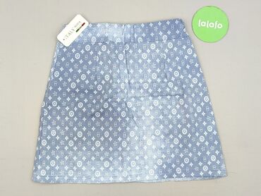 Jasnoniebieska spódnica damska z paskiem - Krój: lekko rozszerzany, długość do kolan (około) - Talia: elastyczna gumka + dołączony szeroki pasek w kolorze beżowym (pleciony, z prostą klamrą) -...