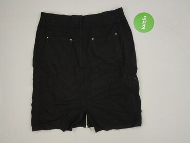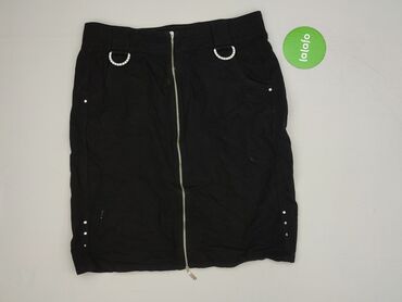 Czarna spódnica damska o długości do kolan, wykonana w 100% z poliestru. Charakterystycznym elementem jest metalowy zamek błyskawiczny biegnący przez całą długość spódnicy z przodu oraz dwa skośne ...Stan: