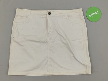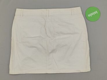 Spódnica damska Camaïeu - Kolor: jasny beż/ecru - Fason: prosta, lekko dopasowana (mini/tuż nad kolano) - Zapięcie: z przodu na zamek i guzik (kryte) - Szlufki na pasek - Przód: dwie kieszenie sko...
