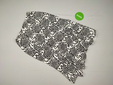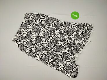 Biała spódnica midi z czarnym, graficznym motywem kwiatowym. - Krój: lekko rozkloszowany, z doszytą falbaną u dołu - Długość: midi (za kolano) - Materiał: 100% poliester (metka na zdjęciach) - Roz...