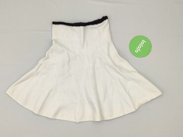 Biała spódnica damska, rozmiar S. - Fason: rozkloszowana, midi - Tkanina: lekka, półprzezroczysta warstwa wierzchnia z delikatną fakturą; podszewka dla komfortu i nieprześwitywania - Talia: elasty...