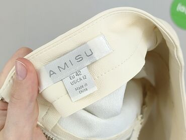 Beżowa spódnica mini marki Amisu, wykonana z imitacji skóry. Krótki fason o prostym kroju, zapinana na zamek błyskawiczny z tyłu. Charakterystyczne szwy dodają jej stylu. Idealna na co dzień, do pr...Stan: