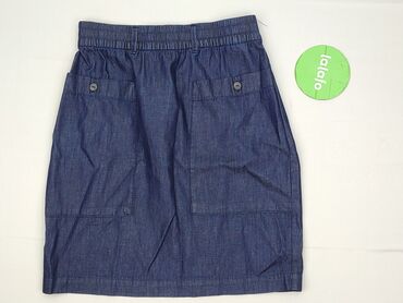Granatowa spódnica mini - Krój: prosta, ołówkowa, mini - Talia: elastyczna guma zapewniająca wygodne dopasowanie - Materiał: miękka, dzianinowa tkanina bawełniana z domieszką elastycznych włókien ...Stan: