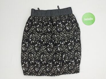 Spódnica damska Vivance - Krój: rozkloszowana, lekko marszczona, z klinami dla ładnego układania się materiału - Wzór: kwiatowy/roślinny na czarnym tle; kolory: fiolet, lila, biel, beż - Talia: el...