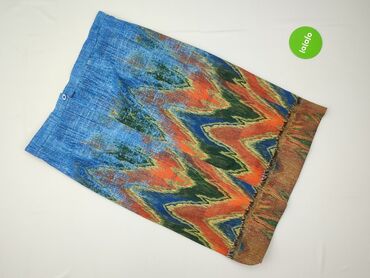Spódnica damska midi z kolorowym, artystycznym nadrukiem - Krój: ołówkowy, długość za kolano/midi - Talia: wyższa - Zapięcie: kryty zamek z tyłu - Materiał: lekka, zwiewna tkanina z marszczeniem; ...