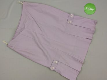 Spódnica ołówkowa damska w kolorze lawendowym. - Krój: ołówkowy, długość do kolan - Stan: używana - Płeć: damska - Wysoki stan z szerokim pasem i szlufkami na pasek - Zapięcie z tyłu: suwak oraz t...
