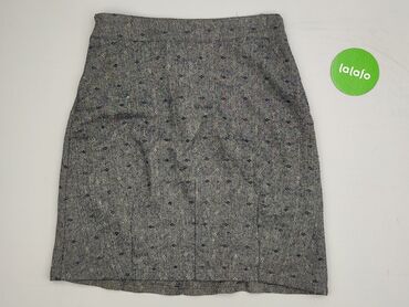 Szara spódnica damska z klinami - Krój: prosta z rozcięciami/zakładkami z przodu, lekko rozszerzana ku dołowi - Kolor: jasnoszary melanż - Zapięcie: suwak z tyłu - Długość: nad kolano (mini/krótka...