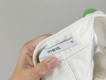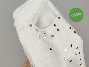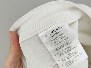 Jeansowa spódnica mini z perełkami i dżetami - Kolor: klasyczny denim blue - Fason: dopasowana, wysoki stan, długość mini - Wykończenie: surowo strzępiona dolna krawędź - Przód: gęsto naszyte pere...Spódnica mini marki IVYREVEL w kolorze złamanej bieli, ozdobiona złotymi i srebrnymi ćwiekami. Z przodu znajdują się dwie kieszenie, a z tyłu dwie naszywane kieszenie, co zwiększa jej funkcjonalność. Zapinana jest na zamek błyskawiczny i guzik. Dolna krawędź spódnicy jest postrzępiona, co nadaje jej swobodny charakter. Spódnica jest zaprojektowana w Sztokholmie i wykonana z 92% bawełny i 7% poliestru, z dodatkiem 1% elastanu, co zapewnia komfort noszenia i dopasowanie. Idealna na co dzień i do letnich stylizacji.