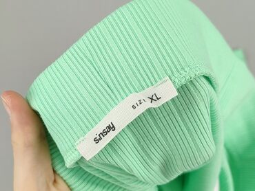 Na co dzieńSpódnica damska marki Sinsay w rozmiarze XL, w jasnym, miętowym kolorze. Charakteryzuje się prążkowaną strukturą materiału, co nadaje jej ciekawą fakturę. Na całej długości spódnicy z przodu znajdują się ozdobne guziki, które dodają jej elegancji. Z przodu umieszczono również rozcięcie, zapewniające swobodę ruchów i dodające spódnicy nowoczesnego wyglądu. Jest to wszechstronny element garderoby, idealny zarówno do codziennych, jak i bardziej formalnych stylizacji.