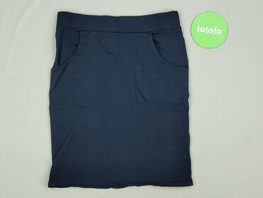 Granatowa spódnica damska ESERED (YFL), rozmiar S. - Fason: prosta, przed kolano - Materiał: 75% bawełna, 25% poliester – miękka, elastyczna dzianina - Talia: elastyczna guma + szlufki - Pasek: sz...