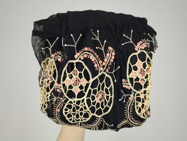 Spódnica damska z kwiatowym wzorem - Krój: kopertowy/zakładany z przodu, asymetryczny dół - Talia: elastyczna gumka - Wzór: duże kwiaty w odcieniach różu, beżu i bieli na czarnym tle - Rozmiar: S ...