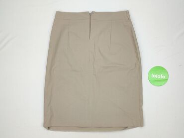 Spódnica damska w kolorze beżowym - Krój: lekko rozszerzana/A-line, z odcięciem poniżej pasa i subtelnymi pionowymi przeszyciami modelującymi sylwetkę - Talia: średnia, pasek z zaszewkami - Zapięc...