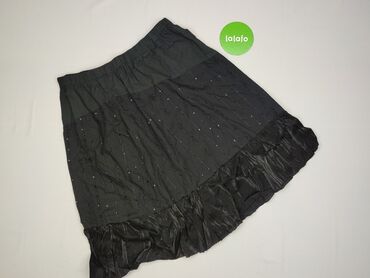 Czarna spódnica midi z lekkiej, półprzezroczystej tkaniny. - Fason: rozkloszowana, lekko asymetryczna (dłuższy tył) - Talia: szeroki, elastyczny pas ze ściągaczem (gumka), dopasowuje się do sylwet...