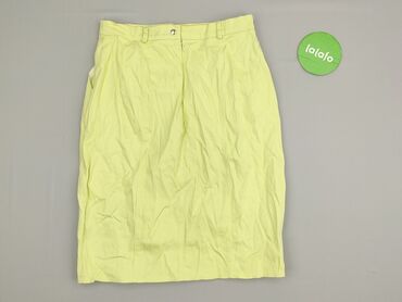 Żółta spódnica ołówkowa, rozmiar 38. - Fason: ołówkowy, za kolano - Talia: elastyczna gumka po bokach dla lepszego dopasowania - Zapięcie: zamek z tyłu - Rozcięcie: niewielkie, z tyłu u dołu - Tka...