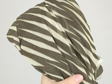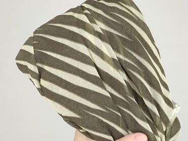- Wzór: diagonalne pasy w odcieniach oliwkowej zieleni i beżu, delikatnie marszczony dół