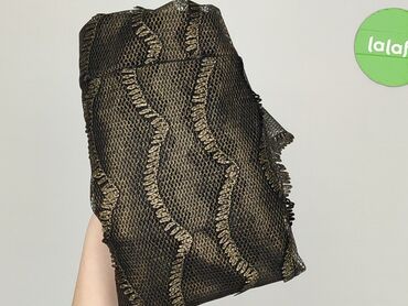 - Tkanina: półprzezroczysta siatka z ozdobnymi, falującymi pasami/lamówkami w kolorze złoto-oliwkowym na czarnym tle; wewnątrz gładka podszewka w kolorze czarnym