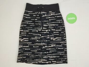 Spódnica damska mini, ołówkowa - Wzór: geometryczne pasy w odcieniach czerni, szarości i bieli - Krój: dopasowany, elastyczny pas, długość mini - Rozmiar z metki: L - Skład materiału: 98% poliester...