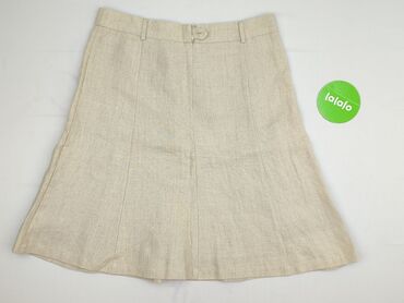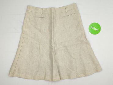 Lniana spódnica BELoVED Woman - Marka: Beloved Woman - Rozmiar z metki: S - Kolor: jasny beż/ecru - Krój: prosta, długość przed kolano - Pas: elastyczna, szeroka guma - Kieszenie: duża naszywana k...