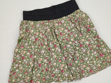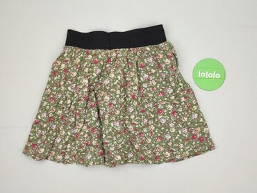 Spódnica damska mini z gumką w pasie - Fason: prosty, lekko rozszerzany ku dołowi, długość przed kolano - Wzór: gęsty, roślinno‑kwiatowy print w odcieniach oliwkowej zieleni na jasnym tle - Pas: e...