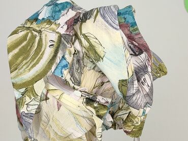 Spódnica damska z lekkiej tkaniny, w botaniczny wzór liści. - Krój: prosty, lekko trapezowy, długość przed kolano. - Wzór/kolor: wielobarwny nadruk liści w odcieniach czerni, beżu, szarości i del...