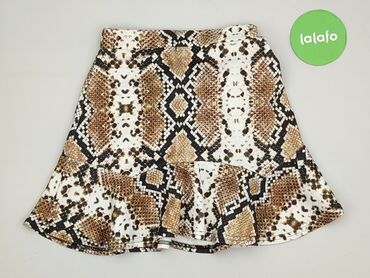 Spódnica damska PrettyLittleThing - Model: mini z falbaną u dołu - Wzór: nadruk wężowy (snake print) w odcieniach brązu, czerni i bieli - Fason: dopasowana góra, lekko rozkloszowany dół z falbaną; ...