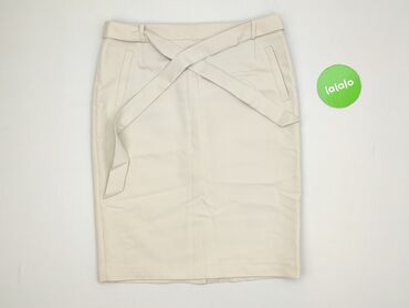 Beżowa spódnica damska, rozmiar 38 - Krój: ołówkowy / midi (za kolano) - Wzór: delikatna jodełka z subtelnymi, pionowymi przeszyciami dekoracyjnymi - Talia: klasyczna, gładki pas - Zapięcie: kryty...