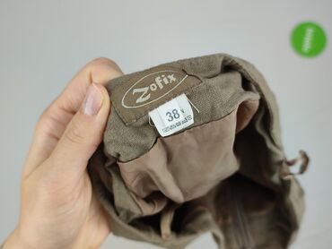 Spódnica damska H&M w rozmiarze 38, z beżowym tłem i wzorem w brązowe liście oraz kwiaty, wzbogacone o akcenty w kolorze limonkowym. Wykonana z mieszanki 97% bawełny i 3% spandexu, co zapewnia komf...Spódnica damska Zofix