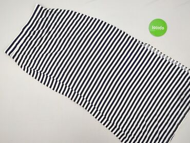 Granatowa spódnica w paski – damska, rozmiar M - Krój: ołówkowy, dopasowany, długość przed kolano - Wzór: poziome, wąskie białe paski na granatowym tle (styl marynistyczny) - Talia: elastyczna gum...Stan: