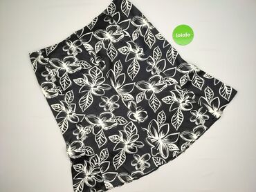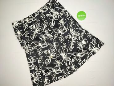 Spódnica damska z rozkloszowanym dołem i wyrazistym, roślinnym nadrukiem. - Krój: delikatnie rozszerzany, sięga mniej więcej przed kolano. - Góra w kolorze czarnym, dół z wielobarwnym wzorem botan...Stan: