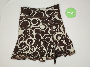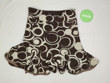 Spódnica damska w kwiatowy wzór - Krój: lekko rozszerzana, z klinami z przodu i z tyłu dla ładnego układania - Wzór/kolor: duże kwiaty; dominują brązy z akcentami żółci, bieli, czerni i beżu - Dłu...