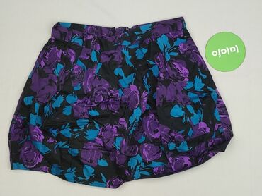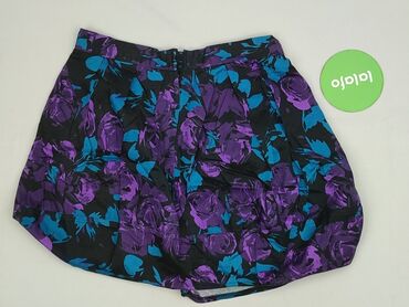 Spódnica Atmosphere, rozmiar 10/38. - Fason: mini, lekko rozkloszowana, z delikatnymi zakładkami - Wzór: abstrakcyjny/galaktyczny na czarnym tle – wielobarwne akcenty (żółcie, fiolety, pomarańcze,...
