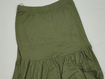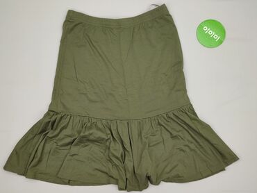 Spódnica LEO CARDI MODE - Rozmiar z metki: 38 - Kolor: oliwkowy/khaki - Fason: rozkloszowana, z klinami; dół wykończony falbaną - Talia: z szlufkami na pasek - Zapięcie: z boku (niewidoczne na zdj...