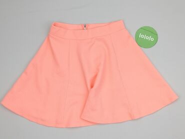 Różowa spódnica mini z żakardowym, subtelnym kwiatowym wzorem. Prosty, lekko A‑linowy krój, gładki pas. Materiał: 100% poliester (metka na zdjęciu). Delikatny połysk tkaniny, przyjemna w dotyku, be...