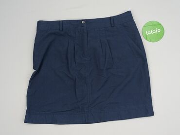 Granatowa spódnica o prostym kroju - Kolor: ciemny granat - Fason: prosta, lekko dopasowana, długość przed kolano - Rozmiar z metki: 46 - Zapięcie: brak widocznego – gładki pas (szlufki na pasek) ...