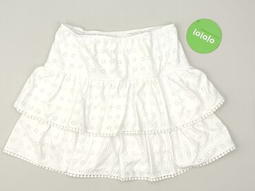 Biała spódniczka mini Sinsay, rozmiar M. - Tkanina ażurowa/koronkowa z haftem angielskim - Fason rozkloszowany, warstwowy z falbankami - Elastyczna gumka w pasie dla wygody - Podszewka od s...