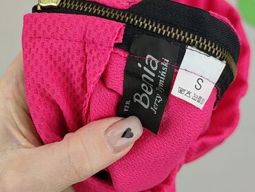Subtelna faktura materiału i wyraźny kolor dodają charakteru, a zakładki zapewniają ładne układanie się spódnicy na sylwetce. Marka: Benia (etykieta widoczna na zdjęciu). Rozmiar z metki: S.