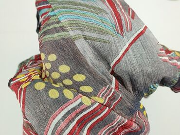- Wzór: wielobarwny print w odcieniach czerwieni, zieleni, turkusu i żółci na ciemnym tle; pasy i kropki tworzą dynamiczny, etniczny motyw